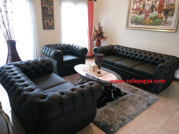 Salah satu model lama yang cukup populer, seiring berjalannya waktu sofa menjadi kotor, kusam dan dudukkannya agak kempes. Setelah memanggil team kami dan berdiskusi perihal bahan yang dipilih dan ingin memodifikasinya menjadi tampak beda, maka diputuskan untuk memilih bahan warna hitam dari kulit sintetis dengan aksen kancing sehingga menjadi lebih berkelas dengan hasil seperti ini.
